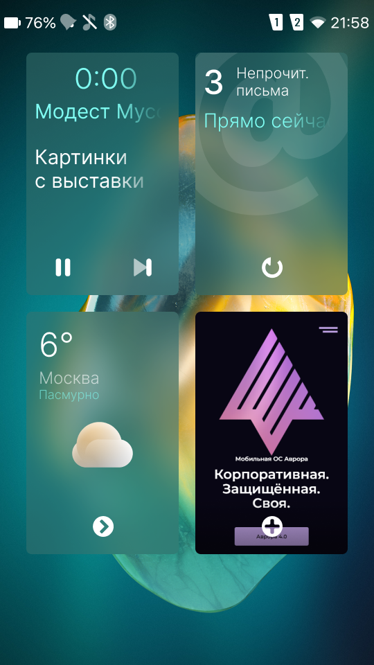 Активная обложка — визуальное представление приложения, работающего в фоновом режиме, на домашнем экране ОС Аврора.