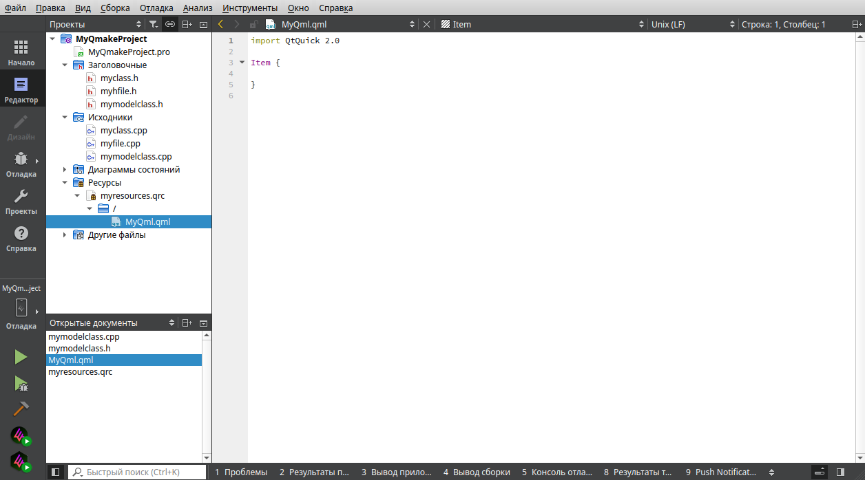 Для создания формы QtQuick Designer вместе с файлом QML необходимо выполнить следующие действия:
