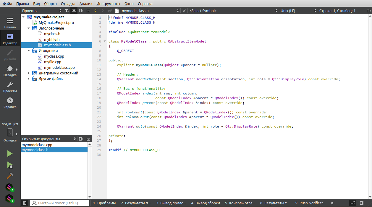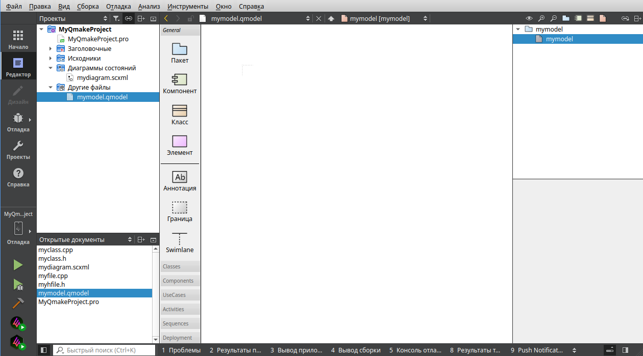 Для создания модели элемента Qt необходимо выполнить следующие действия:
