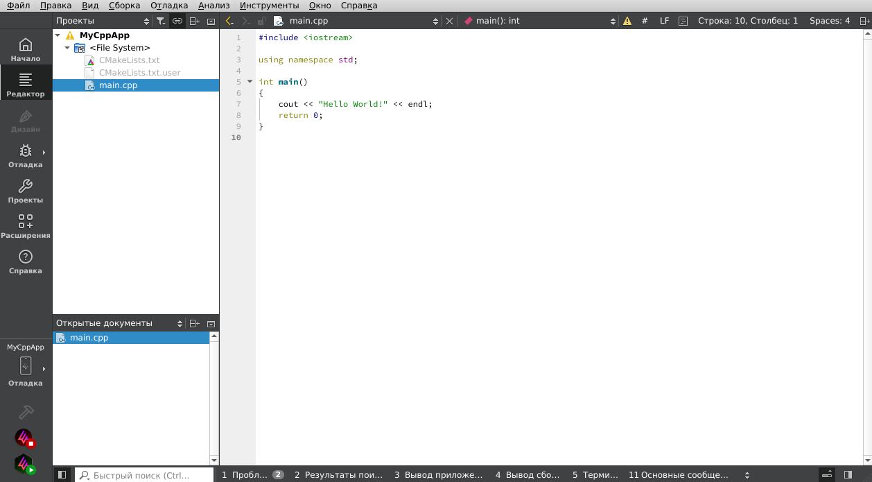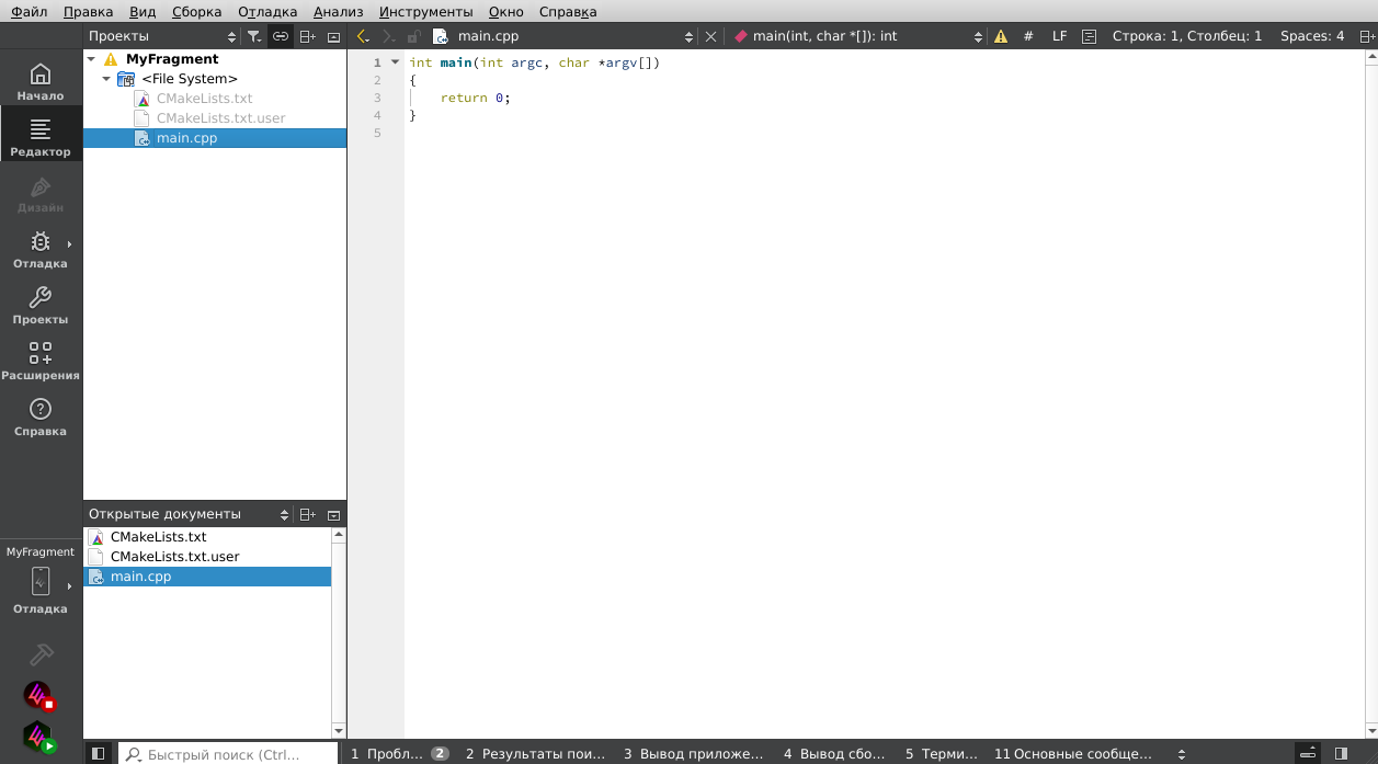 В IDE можно создать простое приложение на языке C++ без зависимостей.