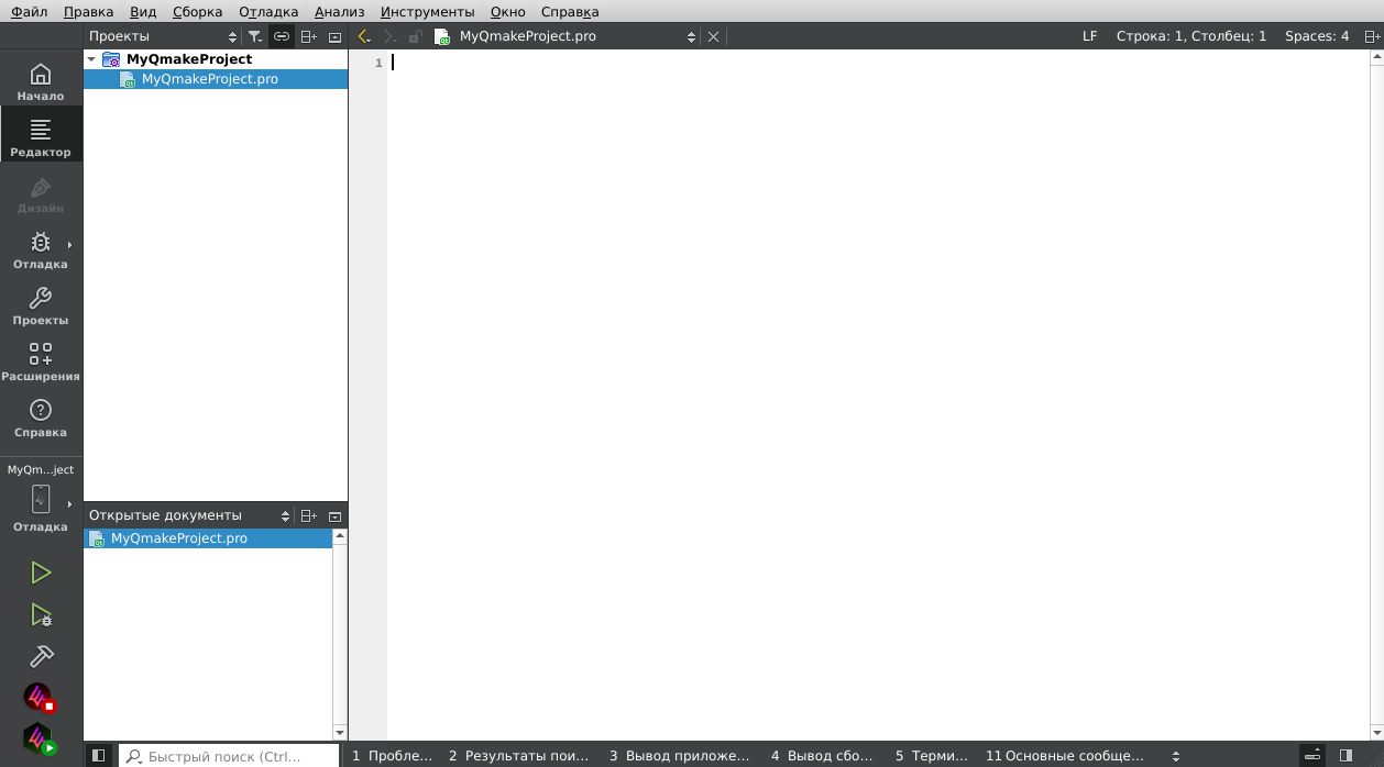 Для создания нового проекта qmake необходимо выполнить следующие действия:
